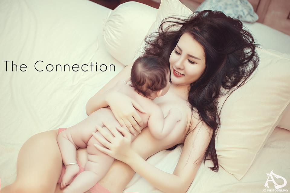 Bộ ảnh này ra đời để kỉ niệm tròn 1 năm từ khi mình có thai bé. Lúc chụp bộ ảnh, mặt mình còn sưng phù, thân hình không còn săn chắc nhưng mình cũng mặc kệ, vì đó là điều tự nhiên của bất kỳ bà mẹ nào lúc mới sinh em bé”.