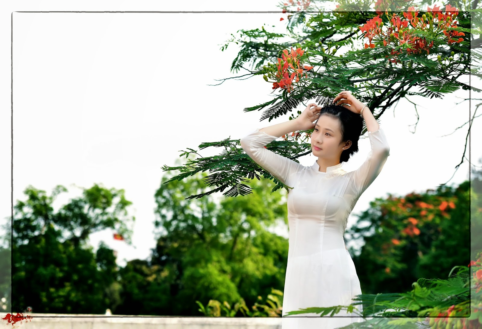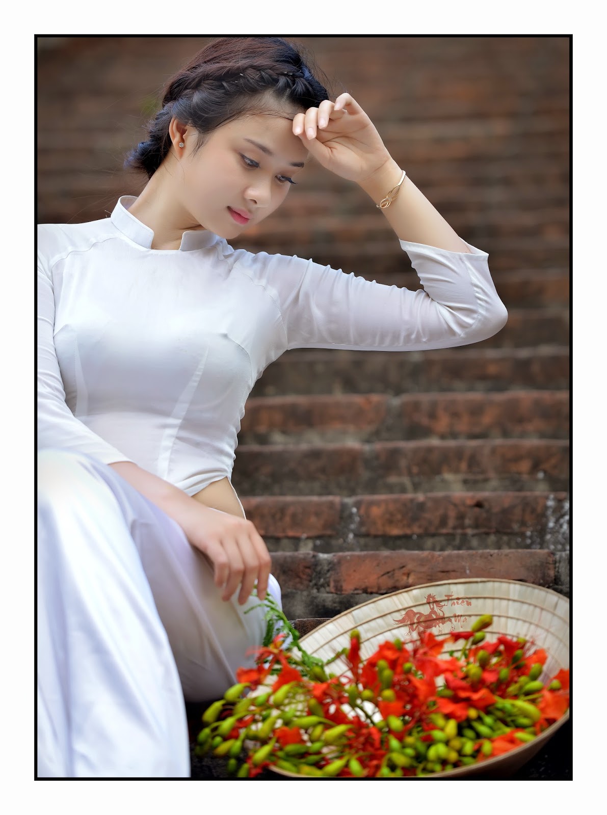 Thường thấy khi chụp ảnh với áo dài là cảnh người mẫu bước đi với mái tóc buông hờ hững cùng với tà áo bay nhẹ trong gió, mà cũng cần phải chú ý để tránh cho tà áo bị kẹp giữa hai chân khi bước…
